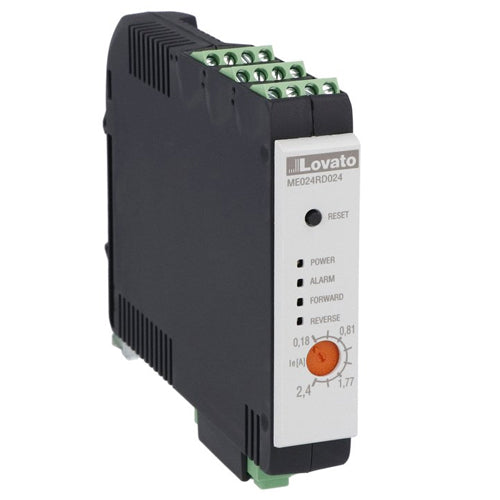 Lovato ME024RD024, Electronic Reversing Starter, 2.4A, Integrated Motor Thermal Protection, Operational Voltage Ue ≤500VAC, Auxiliary and Control Supply Voltage 24VDC