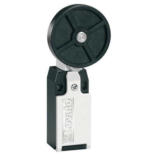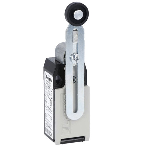Lovato KMB1S11N, Metal Housing Limit Switch, 1NO + 1NC Contact Snap Action, Top Roller Push Plunger, Bottom Cable Entry 1/2 NPT Thread, IP65