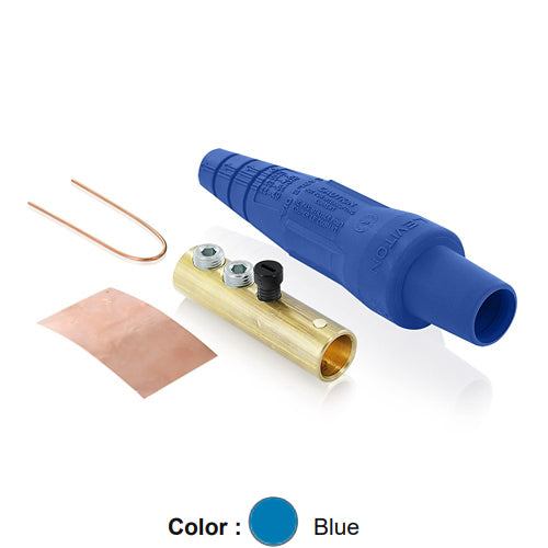 Leviton 16V28-B, 16 Series Taper Nose Female Plug, Commercial Grade, Vulcanized, Crimped, ECT Cam-Type Connector, 400 Amp Max, 600 VAC/DC Max, 3/0-4/0 AWG, Blue