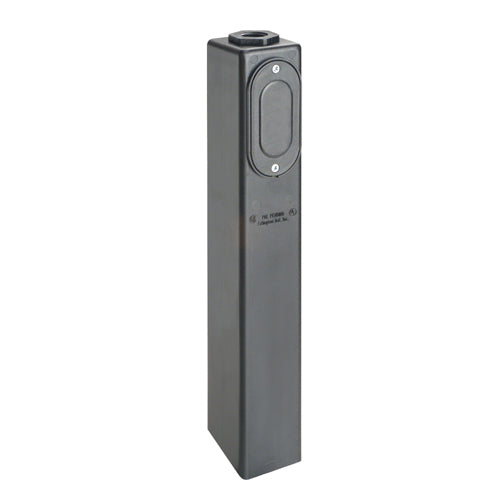 Gard-N-Post. 15" support for three wire outdoor light fixtures. Comes with 3/4" NPT threaded opening and an installed 3/4" by 1/2" non metallic reducing bushing. For use with 1/2" or 3/4" NPT fixtures. Color Black. Color permanent, no chipping.
