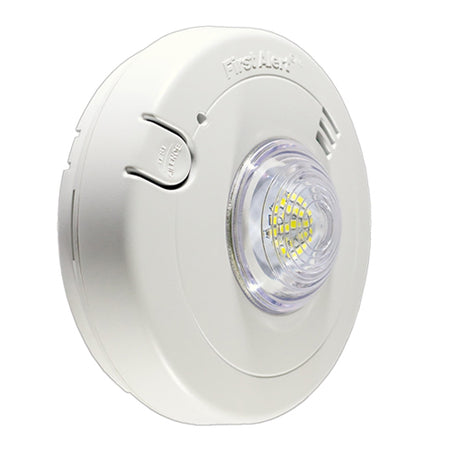 - 177 Candela Synchronized LED - Powerful LED strobe light provides effective visual warning intended to waken hearing impaired residents. When multiple units installed, strobes flash in unison