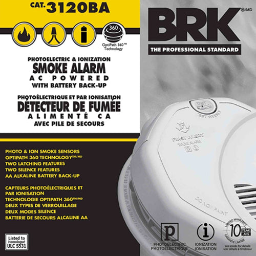 BRK 1044566, Ionization and Photoelectric Dual Sensor Smoke Alarm, 120V Hardwire with 2 AA Battery Backup