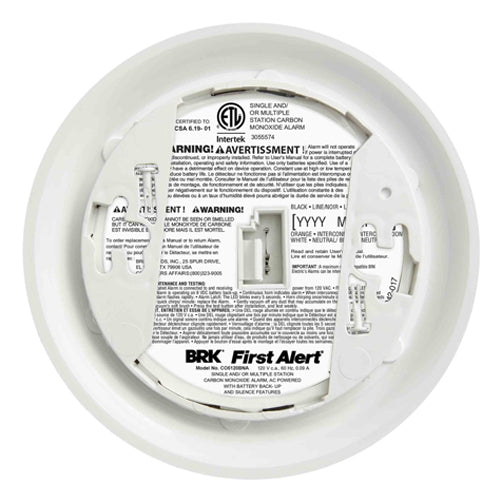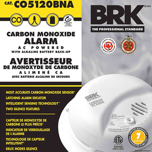 BRK CO5120BNA, Carbon Monoxide Alarm, Detects CO Hazard, 120V Wire-in with Battery Backup, Interconnectable