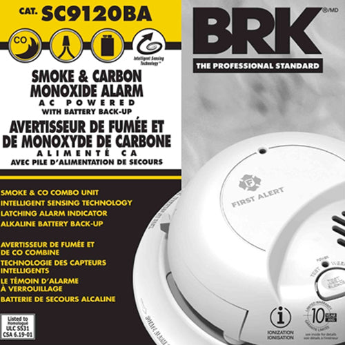 BRK SC9120BA, Smoke and Carbon Monoxide Alarm, Dual Ionization Sensor, Detects Flaming Fires and CO Hazard, 120V Wire-in with Battery Backup, Interconnectable