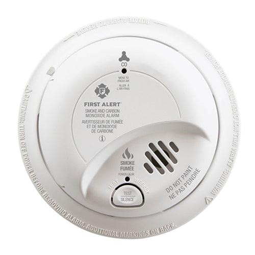 Hardwired combo smoke and CO alarm with replaceable battery backup. AC 120V interconnectable with silence and latching features. Includes Ionization smoke-sensing technology, electrochemical carbon monoxide sensor and a 9V battery. Available in Canada only.
