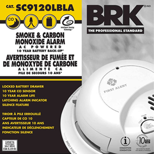 BRK SC9120LBLA, 120V Combination Smoke & Carbon Monoxide Alarm with 10-Year Locked Lithium Battery Backup