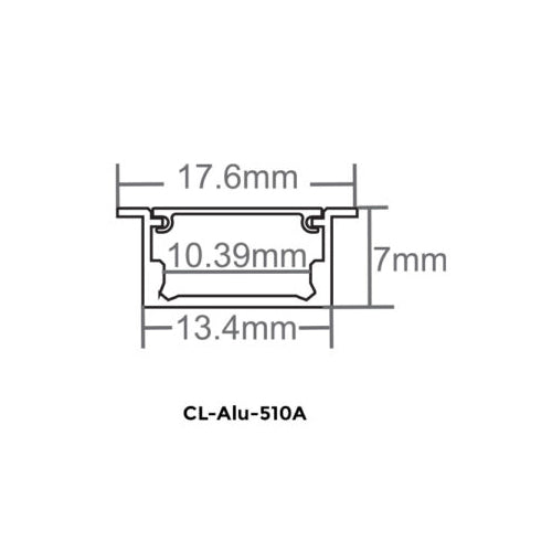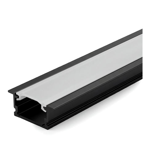 Canolight CL-Alu-510A-BL, Recessed Aluminum Profile 510A with 2 Endcaps & 3 Clips and White PC Cover 10ft, Black