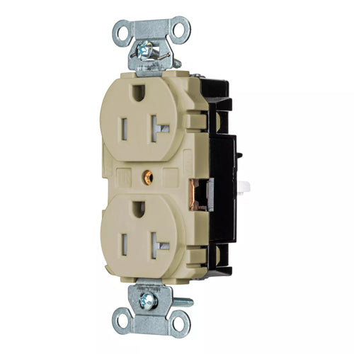 Hubbell-PRO 5362STITR, EdgeConnect Extra Heavy Duty Duplex Receptacles, Tamper Resistant, Smooth Face, Screwless Terminal, 20A 125V, 5-20R, 2-Pole 3-Wire Grounding, Ivory