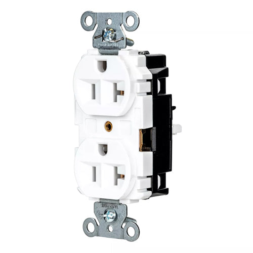 Hubbell-PRO 5362STW, EdgeConnect Extra Heavy Duty Duplex Receptacles, Finder Groove Face, Screwless Terminal, 20A 125V, 5-20R, 2-Pole 3-Wire Grounding, White