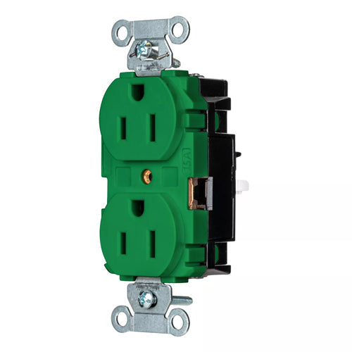 Hubbell BR15STGN, EdgeConnect Commercial Grade Duplex Receptacles, Smooth Face, Screwless Terminal, 15A 125V, 5-15R, 2-Pole 3-Wire Grounding, Green