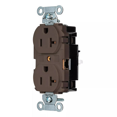 Hubbell BR20ST, EdgeConnect Commercial Grade Duplex Receptacles, Smooth Face, Screwless Terminal, 20A 125V, 5-20R, 2-Pole 3-Wire Grounding, Brown