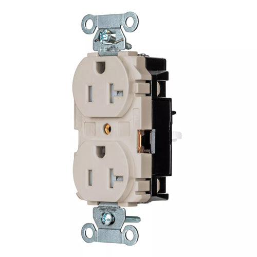 Hubbell BR20STLATR, EdgeConnect Commercial Grade Duplex Receptacles, Tamper Resistant, Smooth Face, Screwless Terminal, 20A 125V, 5-20R, 2-Pole 3-Wire Grounding, Light Almond