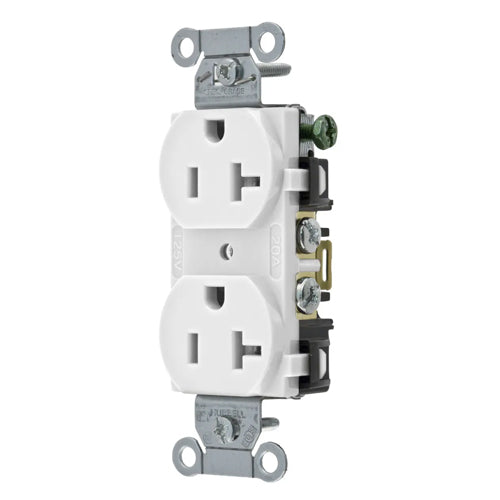 Hubbell BR20WHI, Commercial Grade Duplex Receptacles, Smooth Face, Back and Side Wired, 20A 125V, 5-20R, 2-Pole 3-Wire Grounding, White