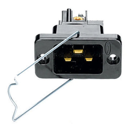 Hubbell H320BL, IEC 320 Devices, Inlet with Wire Bail, International Rated, Pressure Screw Terminal, 20/16A 250V, 2-Pole 3-Wire Grounding, Black