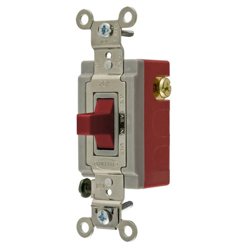 Hubbell HBL1557RLV, Heavy Duty Specification Grade Momentary Contact Toggle Switch, Double Throw, Single Pole, 5A 24V DC, Red