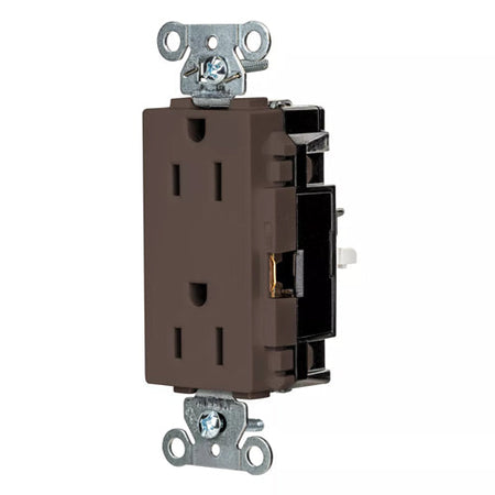 Hubbell HBL2152ST, EdgeConnect Extra Heavy Duty Max Decorator Duplex Receptacles, Screwless Terminal, Back Wired, 15A 125V, 5-15R, 2-Pole 3-Wire Grounding, Brown