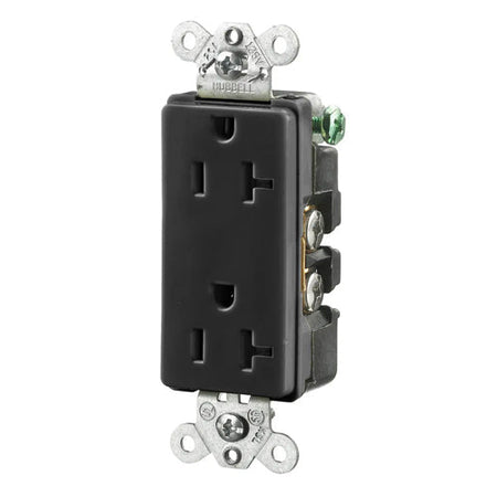 Hubbell HBL2162BK, Extra Heavy Duty Max Compact Duplex Receptacles, Style Line Decorator, Back and Side Wired, 20A 125V, 5-20R, 2-Pole 3-Wire Grounding, Black