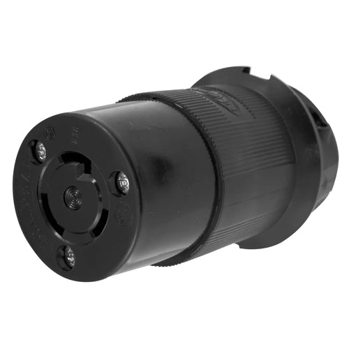 Hubbell HBL2313EBK, Insulgrip Female Connector Body, Cord Clamps with Removable Inserts, Black Nylon, 20A 125V, L5-20R, 2-Pole 3-Wire Grounding