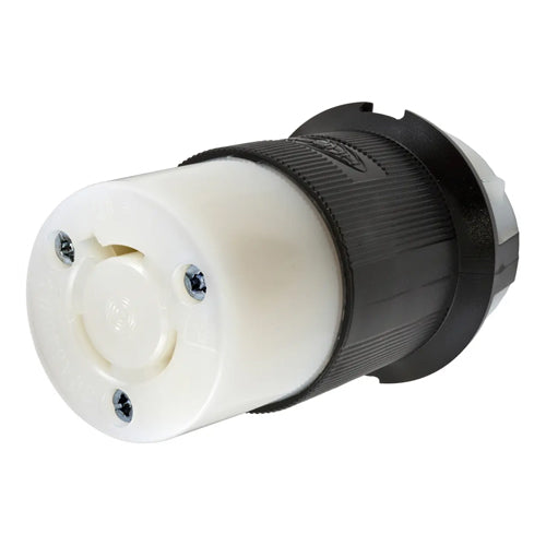 Hubbell HBL2353, Insulgrip Female Connector Bodies, Black and White Nylon, 20A 600V, L9-20R, 2-Pole 3-Wire Grounding