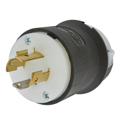 Hubbell HBL2411, Insulgrip Male Plugs, Black and White Nylon, 20A 125/250V, L14-20P, 3-Pole 4-Wire Grounding