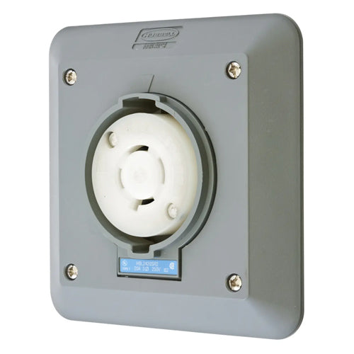 Hubbell HBL2420SR2, Safety-Shroud Twist-Lock Receptacles, Semi-Flush, Two Gang, Back Wired, 20A 250V, L15-20R, 3-Pole 4-Wire Grounding