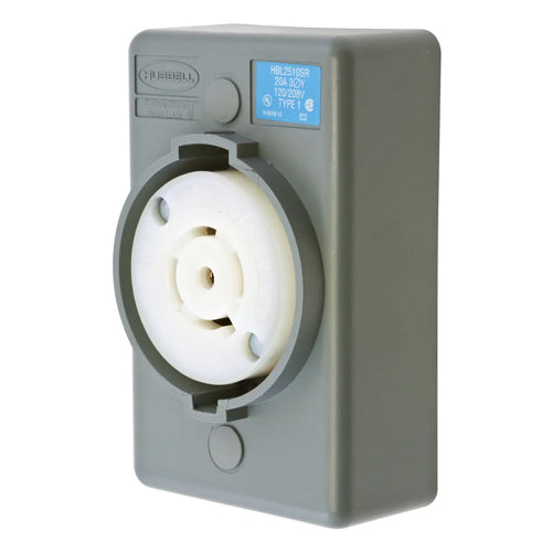 Hubbell HBL2510SR, Safety-Shroud Twist-Lock Receptacles, Surface Mounting, One Gang, Back Wired, 20A 120/208V, L21-20R, 3 Phase, 4-Pole 5-Wire Grounding