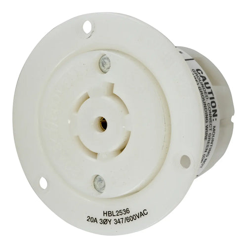 Hubbell HBL2536, Insulgrip Flanged Receptacles, Nylon Casing, Back Wired, 20A 347/600V, L23-20R, 3 Phase, 4-Pole 5-Wire Grounding