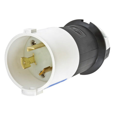 Hubbell HBL2621S, Safety-Shroud Male Plugs, Black and White Nylon Body, White Shroud, 30A 250V, L6-30P, 2-Pole 3-Wire Grounding