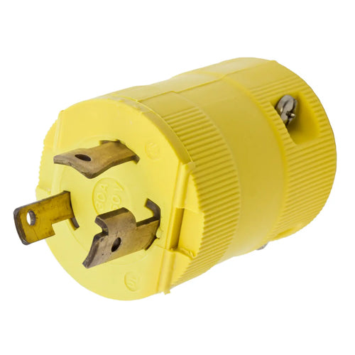 Hubbell HBL2621VY, Valise Male Plugs, Yellow Nylon, 30A 250V, L6-30P, 2-Pole 3-Wire Grounding
