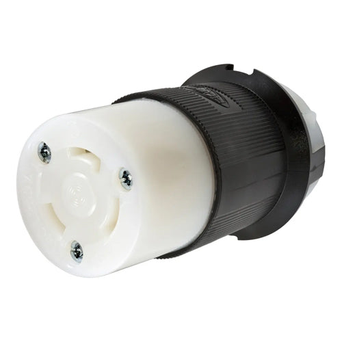 Hubbell HBL2623, Insulgrip Female Connector Bodies, Black and White Nylon, 30A 250V, L6-30R, 2-Pole 3-Wire Grounding