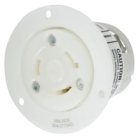 Hubbell HBL2636, Insulgrip Flanged Receptacles, Nylon Casing, Back Wired, 30A 277V, L7-30R, 2-Pole 3-Wire Grounding