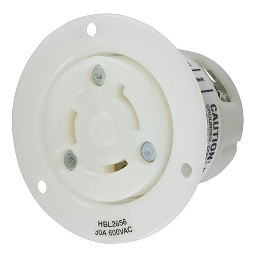 Hubbell HBL2656, Insulgrip Flanged Receptacles, Nylon Casing, Back Wired, 30A 600V, L9-30R, 2-Pole 3-Wire Grounding