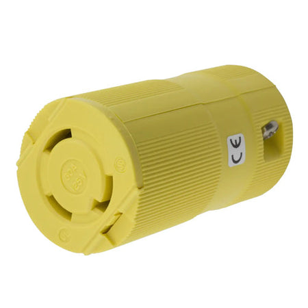 Hubbell HBL26CM13V, Valise Connector Body, Corrosion Resistant, Yellow Nylon, 30A 125V, L5-30R, 2-Pole 3-Wire Grounding