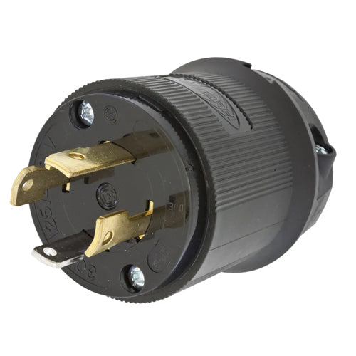 Hubbell HBL2711BK, Insulgrip Male Plugs, All Black Nylon, 30A 125/250V, L14-30P, 3-Pole 4-Wire Grounding