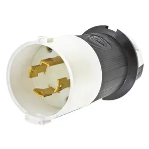 Hubbell HBL2721S, Safety-Shroud Male Plugs, Black and White Nylon Body, White Shroud, 30A 250V, L15-30P, 3-Pole 4-Wire Grounding