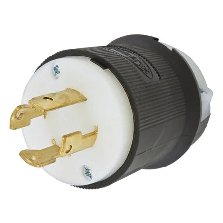Hubbell HBL2731, Insulgrip Male Plugs, Black and White Nylon, 30A 480V, L16-30P, 3-Pole 4-Wire Grounding
