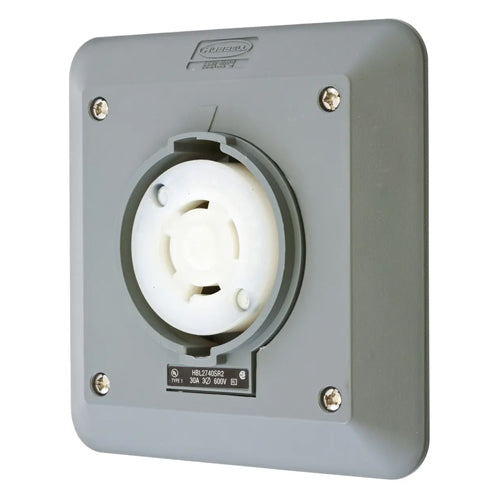 Hubbell HBL2740SR2, Safety-Shroud Twist-Lock Receptacles, Semi-Flush, Two Gang, Back Wired, 30A 600V, L17-30R, 3-Pole 4-Wire Grounding