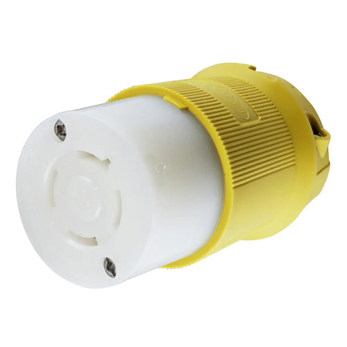 Hubbell HBL27CM43, Insulgrip Connector Bodies, Corrosion Resistant, Yellow Nylon, 30A 600V, L17-30R, 3-Pole 4-Wire Grounding