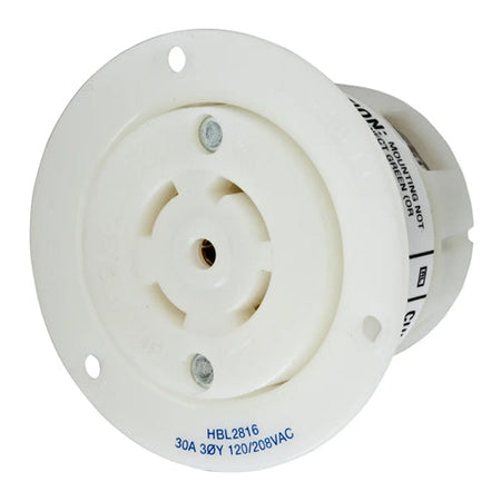 Hubbell HBL2816, Insulgrip Flanged Receptacles, Nylon Casing, Back Wired, 30A 120/208V, L21-30R, 3 Phase, 4-Pole 5-Wire Grounding