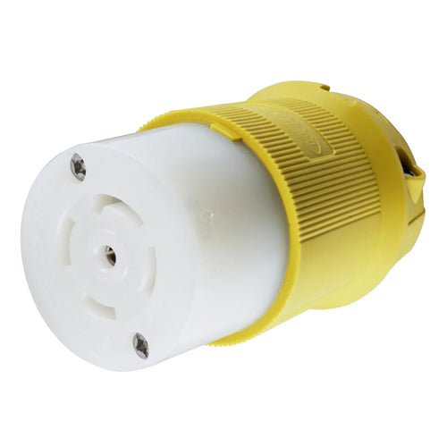Hubbell HBL28CM13, Insulgrip Female Connector Bodies, Corrosion Resistant, Yellow Nylon, 30A 120/208V, L21-30R, 3 Phase, 4-Pole 5-Wire Grounding