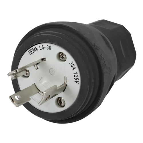 Hubbell HBL28W47BK, Watertight Twist-Lock Male Plug, 30A 125V, L5-30P, 2-Pole 3-Wire Grounding, Black
