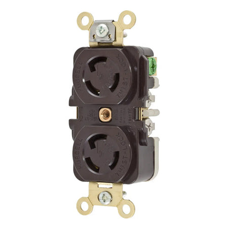 Hubbell HBL4700, Duplex Flush Receptacles, Brown RTP Face, Back and Side Wired, 15A 125V, L5-15R, 2-Pole 3-Wire Grounding