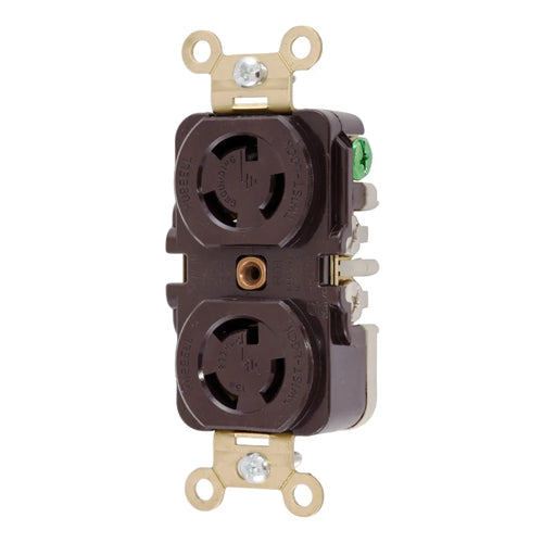 Hubbell HBL4750, Duplex Flush Receptacles, Brown RTP Face, Back and Side Wired, 15A 277V, L7-15R, 2-Pole 3-Wire Grounding