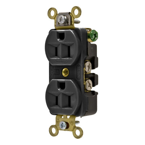 Hubbell HBL5252BK, Extra Heavy Duty Max Duplex Compact Receptacles, Industrial Grade, Back and Side Wired, 15A 125V, 5-15R, 2-Pole 3-Wire Grounding, Black