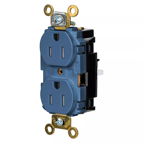 Hubbell HBL5262STBLTR, EdgeConnect Extra Heavy Duty Max Duplex Receptacles, Tamper Resistant, Screwless Terminal, Back Wired, 15A 125V, 5-15R, 2-Pole 3-Wire Grounding, Blue