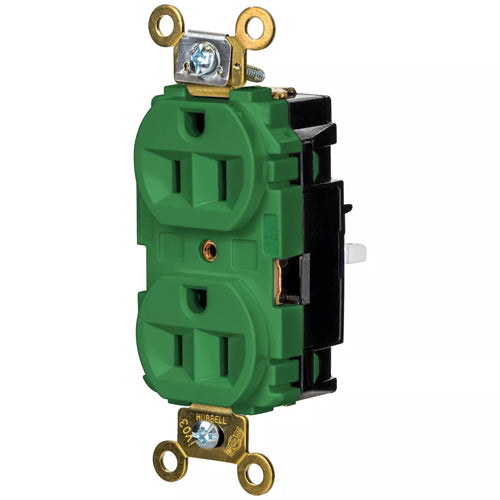 Hubbell HBL5262STGN, EdgeConnect Extra Heavy Duty Max Duplex Receptacles, Screwless Terminal, Back Wired, 15A 125V, 5-15R, 2-Pole 3-Wire Grounding, Green