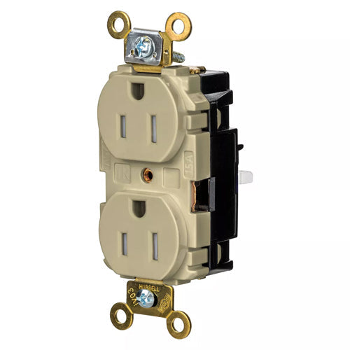 Hubbell HBL5262STITR, EdgeConnect Extra Heavy Duty Max Duplex Receptacles, Tamper Resistant, Screwless Terminal, Back Wired, 15A 125V, 5-15R, 2-Pole 3-Wire Grounding, Ivory