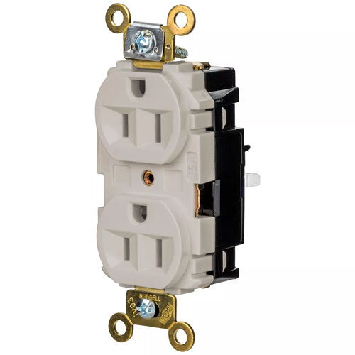 Hubbell HBL5262STLA, EdgeConnect Extra Heavy Duty Max Duplex Receptacles, Screwless Terminal, Back Wired, 15A 125V, 5-15R, 2-Pole 3-Wire Grounding, Light Almond