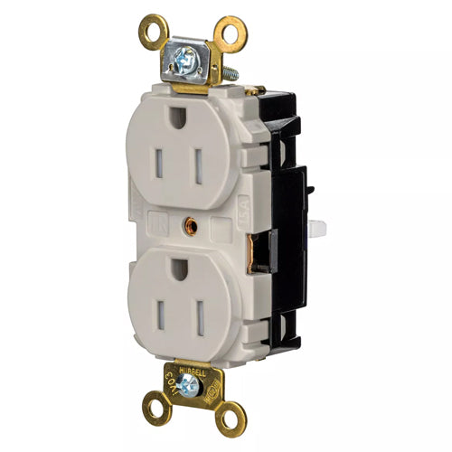 Hubbell HBL5262STLATR, EdgeConnect Extra Heavy Duty Max Duplex Receptacles, Tamper Resistant, Screwless Terminal, Back Wired, 15A 125V, 5-15R, 2-Pole 3-Wire Grounding, Light Almond