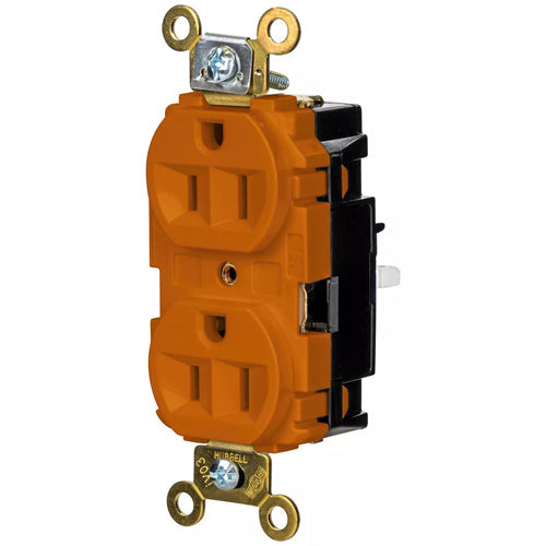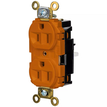 Hubbell HBL5262STO, EdgeConnect Extra Heavy Duty Max Duplex Receptacles, Screwless Terminal, Back Wired, 15A 125V, 5-15R, 2-Pole 3-Wire Grounding, Orange